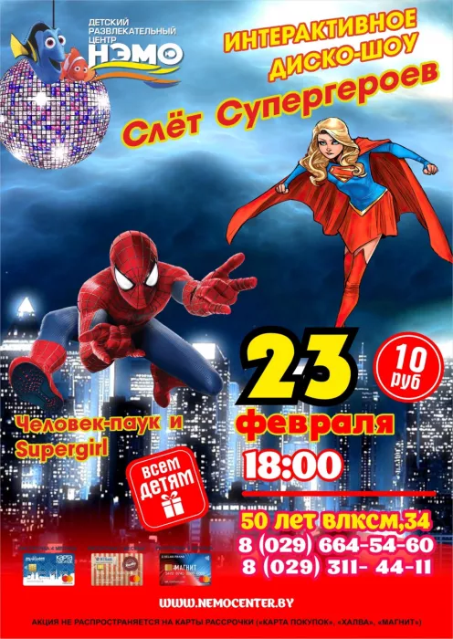 Впервые в "Нэмо" интерактивное диско- шоу "Слёт Супергероев"!