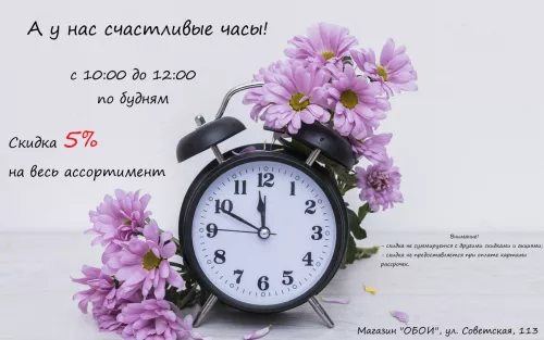В магазине «ОБОИ» с 1 ноября начинает действовать акция «Счастливые часы» !