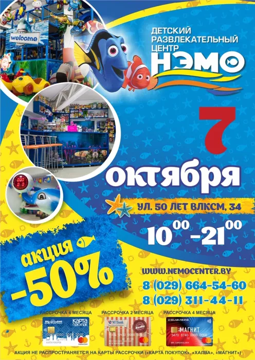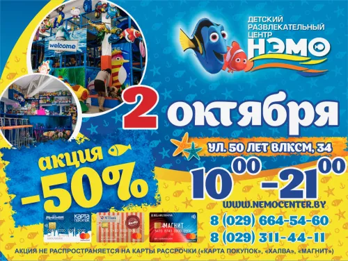 7 октября в детском развлекательном центре «НЭМО» супер акция -50%