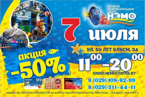 Внимание!!! Завтра, 7 июля в «НЭМО» супер акция -50% !