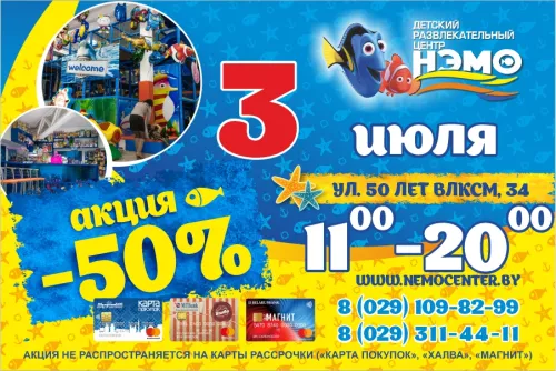Внимание!!! Завтра, 3 июля в «НЭМО» супер акция -50% !