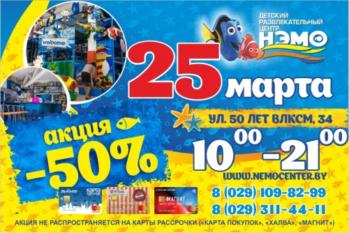 25 марта в детском развлекательном центре «НЭМО» акция -50%