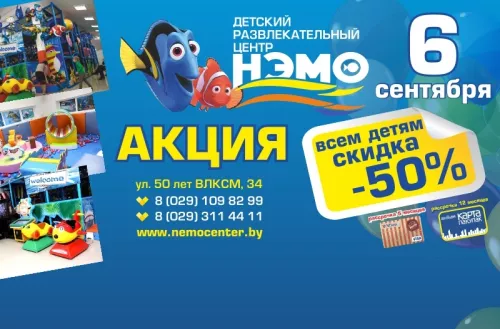 6 сентября - 50% скидка в ДРЦ НЭМО!