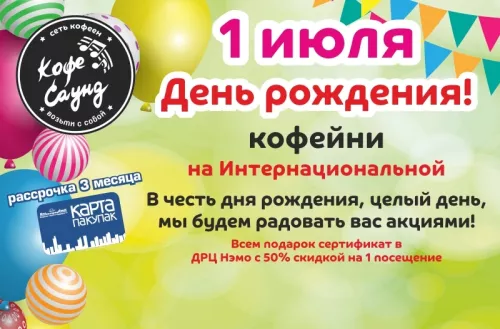 1 июля акции в честь Дня рождения кофейни "Кофе Саунд"!
