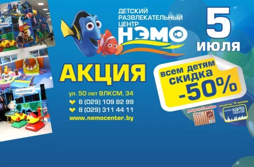 5 июля в ДРЦ «НЭМО» скидка 50%!