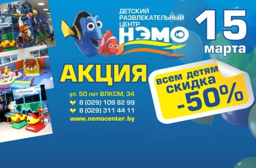 21 марта - 50% скидка, а 23 марта дискотека в ДРЦ НЭМО