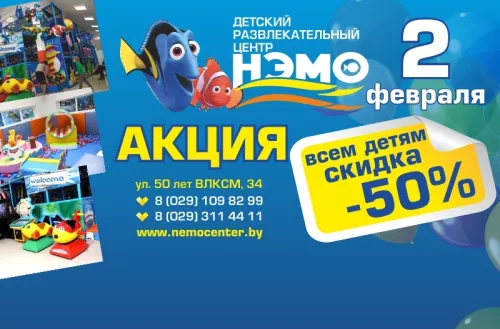 9 февраля - 50% скидка, а 19 февраля дискотека в ДРЦ "Нэмо"!