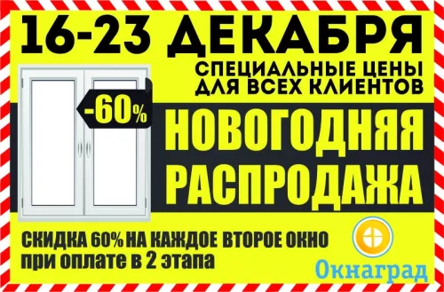 С 16-23 декабря НОВОГОДНЯЯ РАСПРОДАЖА ОКОН — СКИДКИ до 60%!