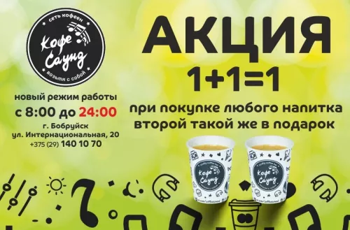 Акция в "Кофе Саунд" - 1+1=1