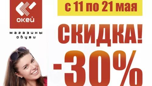 С 11 по 21 мая в магазине обуви «Окей» СКИДКА -30%