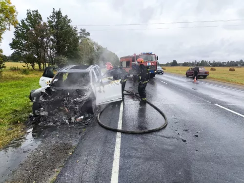 На трассе около деревни Сычково загорелся автомобиль