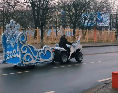 Видео-факт: по улицам Бобруйска ездят новогодний поезд и сани Деда Мороза