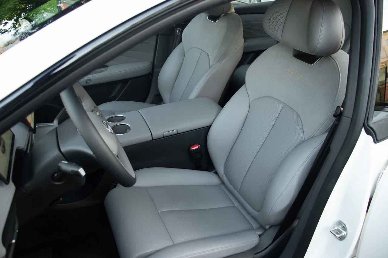 Интерьер Nissan N7 выполнен с акцентом на практичность и удобство. В отделке используются матовые материалы, которые меньше собирают отпечатки и дольше сохраняют аккуратный внешний вид. В передней части салона установлены 15,6-дюймовый экран мультимедийной системы и 10,25-дюймовая цифровая панель приборов, обеспечивающие удобное управление и наглядное отображение информации.