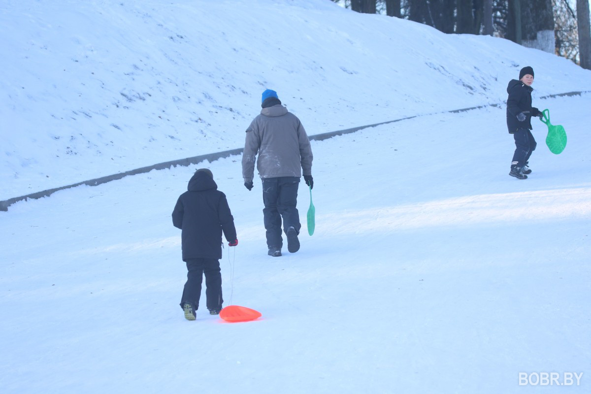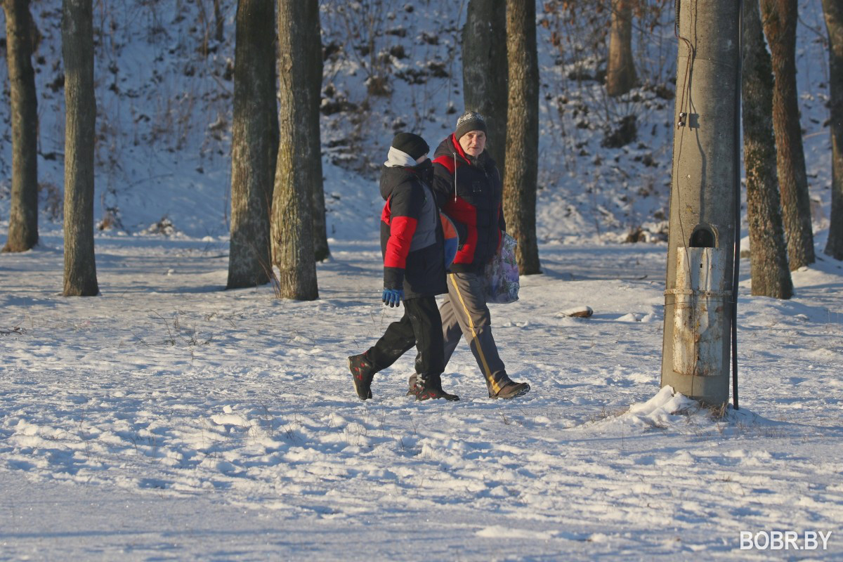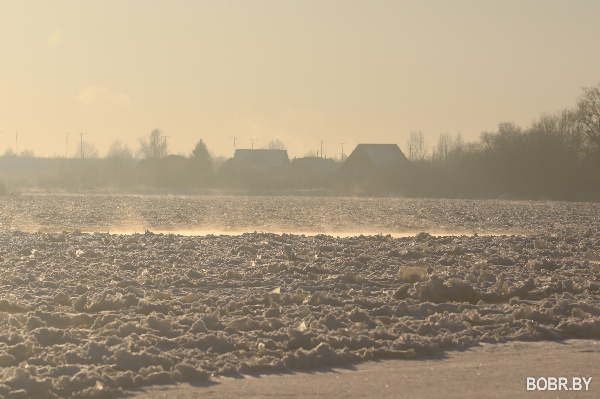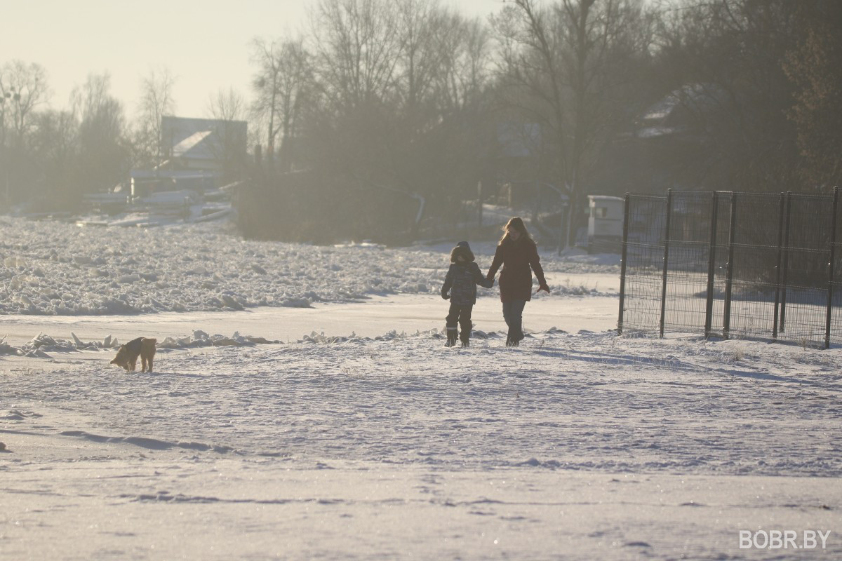 Первый день 2026 года выдался солнечным и морозным. А река Березина покрылась льдом - вот фото с центрального речного пляжа и окрестностей.