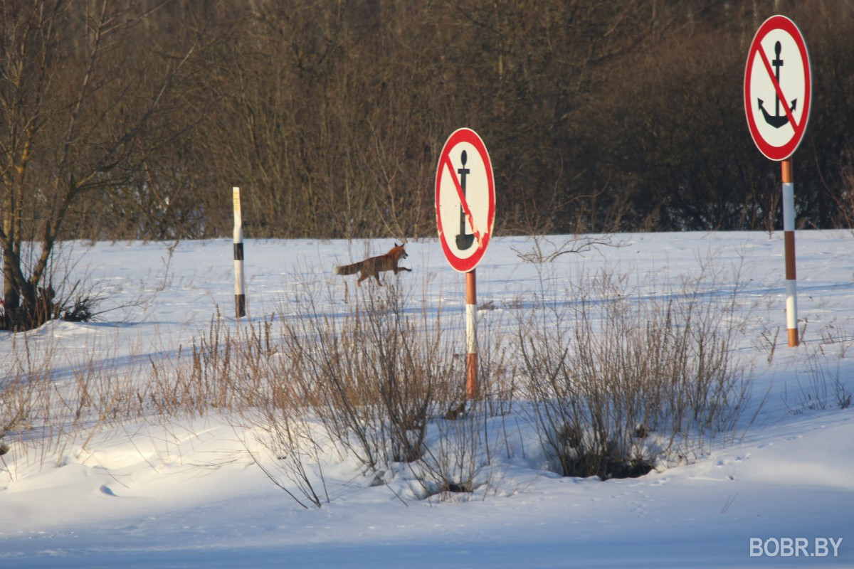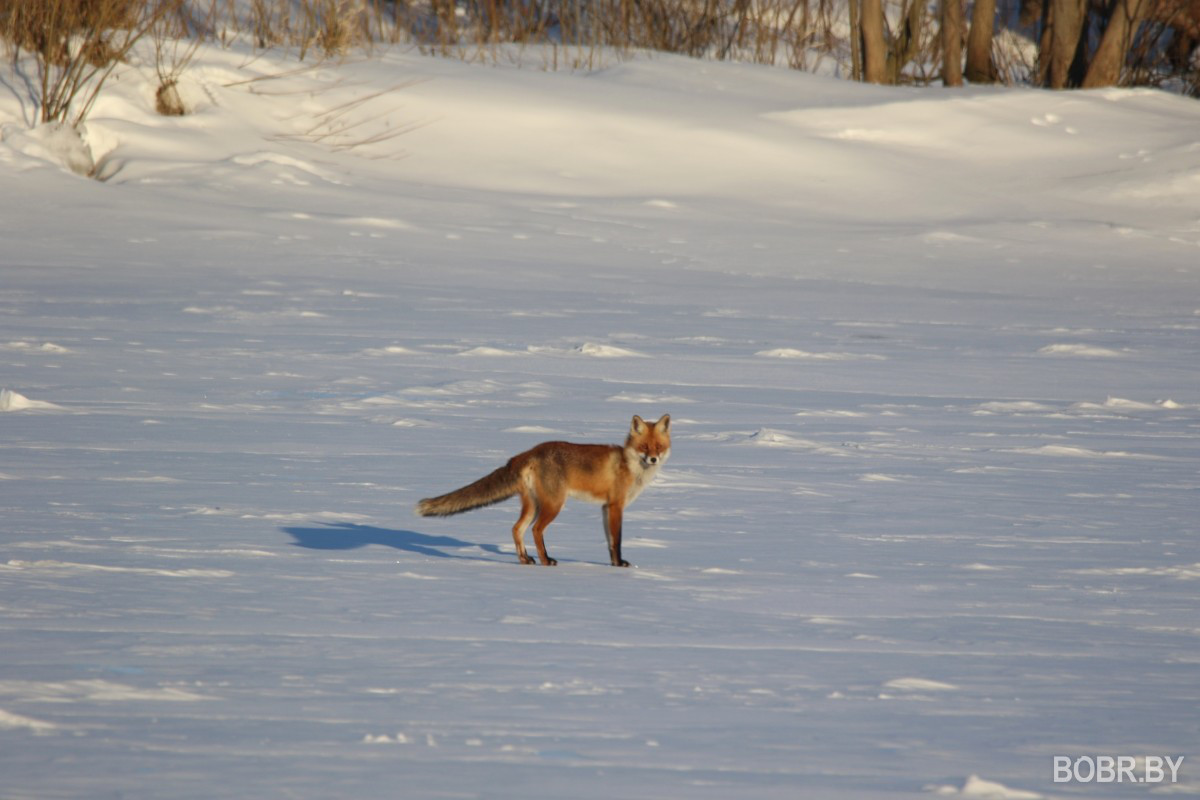 Оказалось, что по льду Березины к застройке приближается две взрослых лисы, одна из которых громко подавала голос. Возможно, рыжие хотели навестить чей-то курятник?