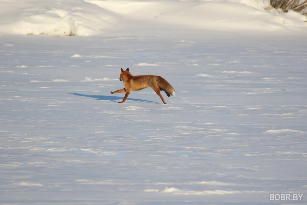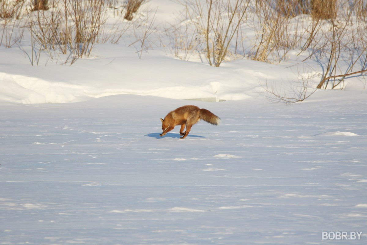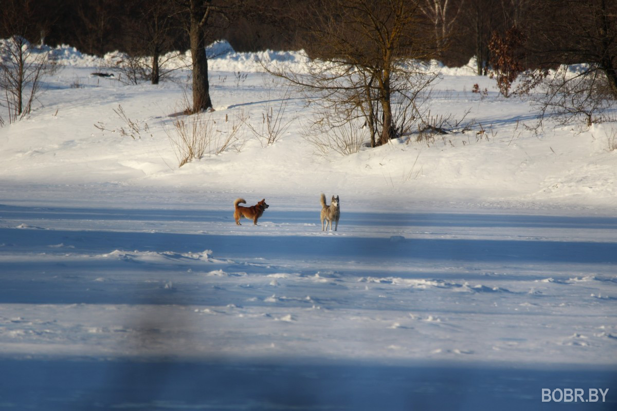 Брачный сезону лис в Беларуси приходится на январь-февраль. Возможно, этим объясняется парная прогулка лис по льду Березины в пригороде Бобруйска.