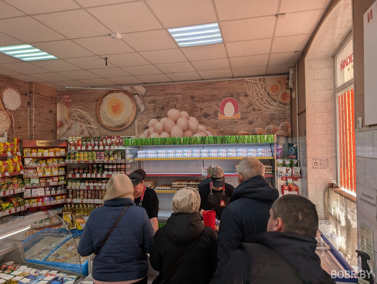 Оказалось, что в очень многих торговых точках Бобруйска нет яиц с белой скорлупой. При этом бежевые куриные яйца есть везде. Надежда на птицефабрику «Вишнёвка» тоже не оправдалась: некоторые фирменные павильоны закрыты уже несколько дней.