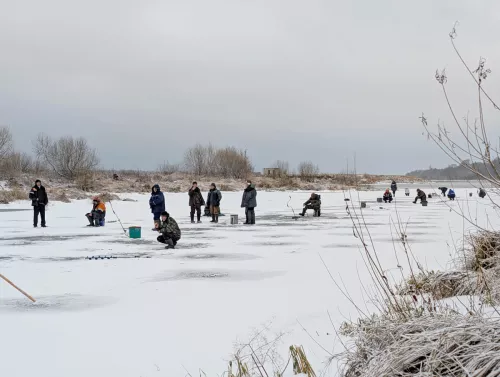 Рыбалка зовет! Три десятка рыбаков на ледяном пятачке в заводи Березины ВИДЕО