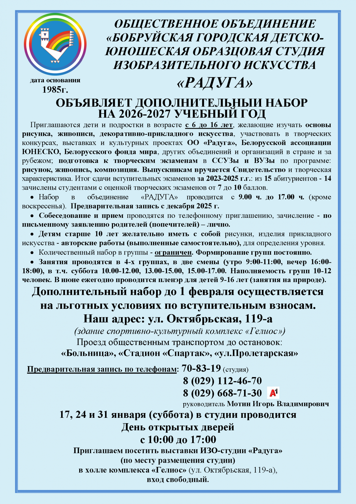 10 января 2026 года в уютной творческой мастерской ИЗО - студии «РАДУГА». Прошло подведение итогов и награждение победителей конкурса рисунка «Краски Рождества и Нового года».