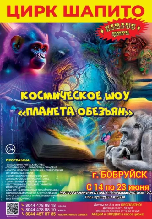 Впервые в Бобруйске цирк шапито «Сириус» с новой программой: «КОСМИЧЕСКОЕ ШОУ «ПЛАНЕТА ОБЕЗЬЯН»
