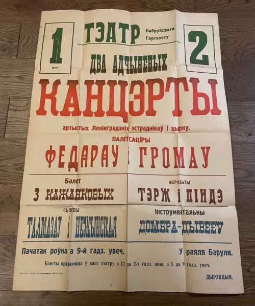 На российском аукционе продают антикварную афишу Театра Бобруйского горсовета. Политсатира из Ленинграда, акробаты и пение, начало в 9 вечера