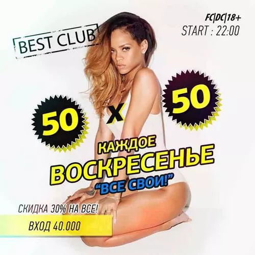 Ночной клуб BEST Club: вечеринка 50х50 «Все свои»