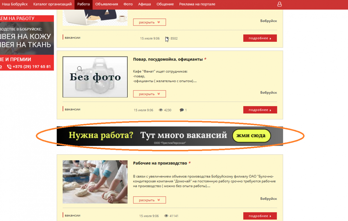 Баннер можно размещать В ЛЮБОМ ПОДРАЗДЕЛ ОБЪЯВЛЕНИЙ