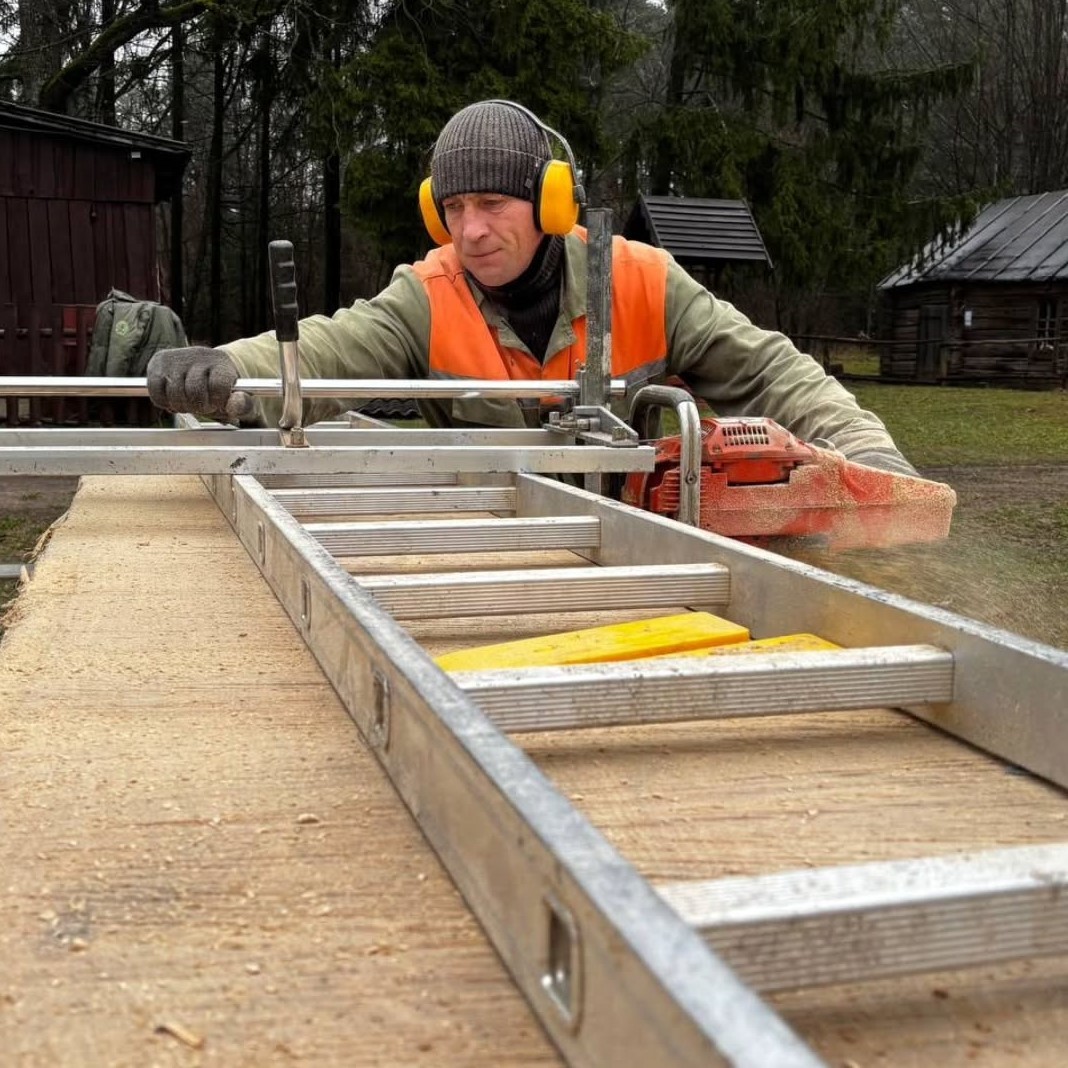 Для него бензопила –привычный и хорошо знакомый инструмент. Выполнять продольные и поперечные распилы с помощью станины ранее не приходилось, тем не менее с задачей он справился. В скором времени слэбы от Бобруйского лесхоза поступят на собственную торговую площадку «Лесной домик» для последующей реализации. Проявляют интерес к этой продукции и другие площадки Могилевского ГПЛХО.