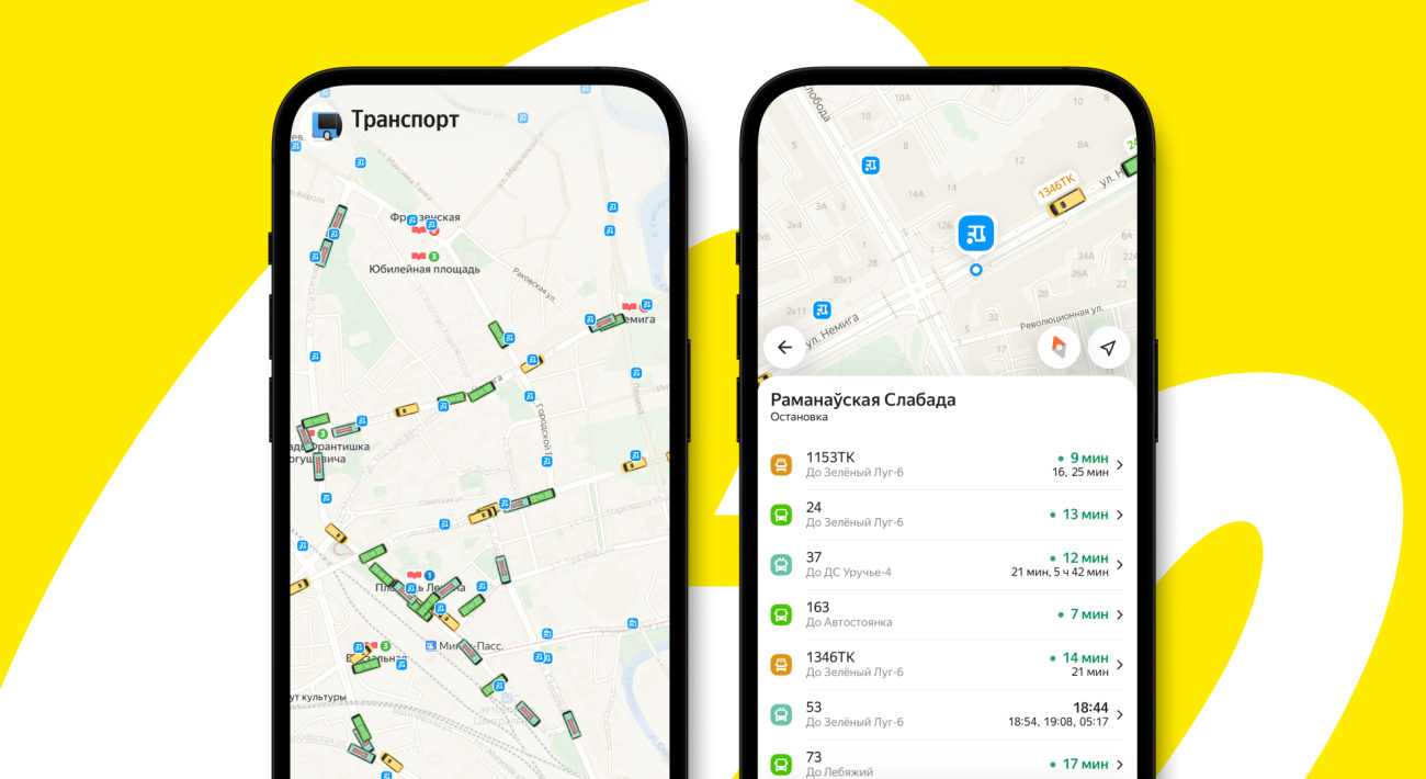 В разделе “Транспорт” в Яндекс Go и Яндекс Картах увеличилось число маршрутов общественного транспорта, доступных для отслеживания. Теперь пользователи приложений могут следить за перемещением всего наземного общественного транспорта Минска и Могилёва в режиме реального времени.