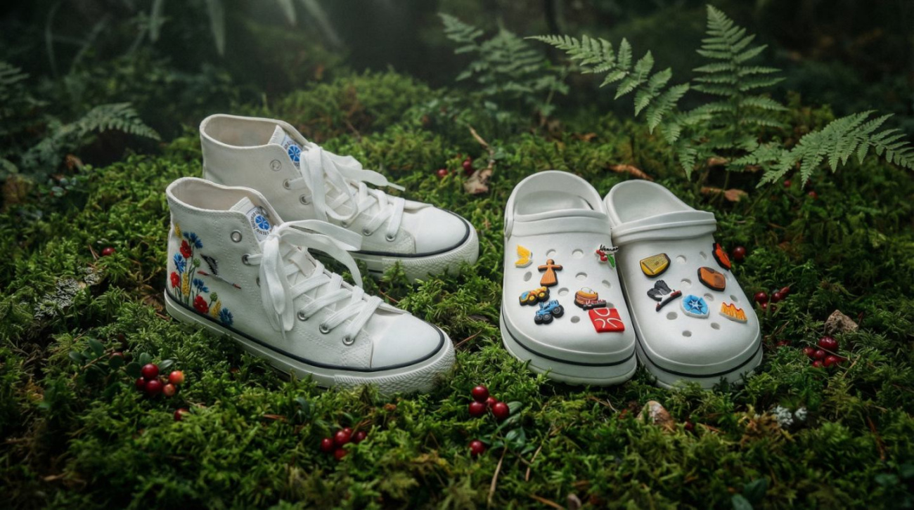 В коллекции объединили эстетику и комфорт. На женских кедах и полукедах изображены васильки, колоски и аисты. Кроксы идут в комплекте с значками-джибитсами в виде буханки ржаного хлеба, васильков, средневекового замка, гуслей, драников со сметаной и традиционных соломенных фигурок.