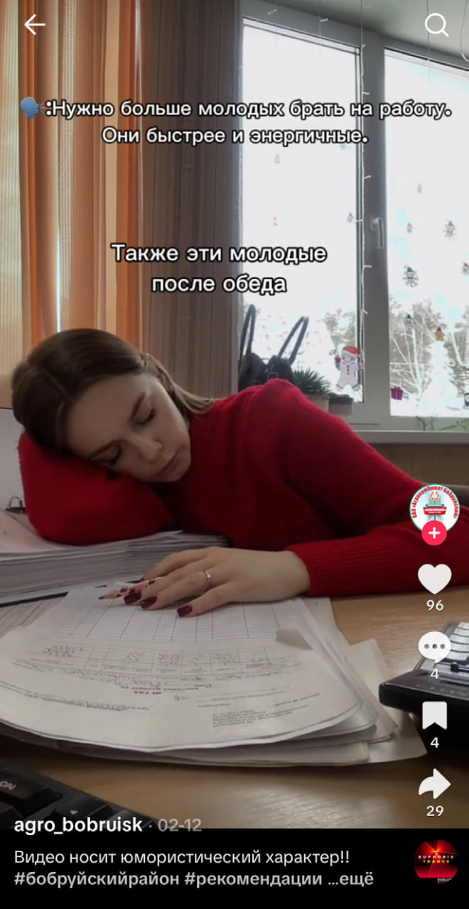 Молодой инженер по охране труда ОАО «Агрокомбинат Бобруйский» Дарья Степанова с энтузиазмом присоединилась к инициативе. Рассказывает: снимать видеоролики о своем сельхозпредприятии начала в декабре прошлого года, у аккаунта уже тысяча подписчиков, а у отдельных роликов по 50–80 тысяч просмотров. Никаких модных бьюти-процедур, распаковок, пранков, но люди с удовольствием смотрят и комментируют с позитивом и уважением к тому, что видят.