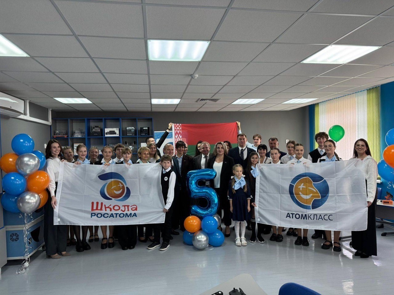 В гимназии Nº 1 города Островца состоялось торжественное открытие второго в городе «атомкласса» проекта «Школа «Росатома» при поддержке АО «Росатом Сервис». В мероприятии приняли участие генеральный директор АО «Росатом Сервис» Евгений Сальков, генеральный директор РУП «Белорусская атомная элекстростанция» Сергей Бобович, президент благотворительного фонда «Новые возможности» и куратор проекта «Школа Росатома» Оксана Малафеева и другие.