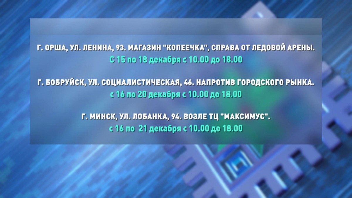 В Орше ярмарка будет работать на Ленина, 93, в магазине «Копеечка». В Бобруйске – на улице Социалистической, напротив городского рынка. А в Минске – на улице Лобанка, в рыжей палатке возле ТЦ «Максимус». Все точки открыты с 10 утра и до 6 вечера.