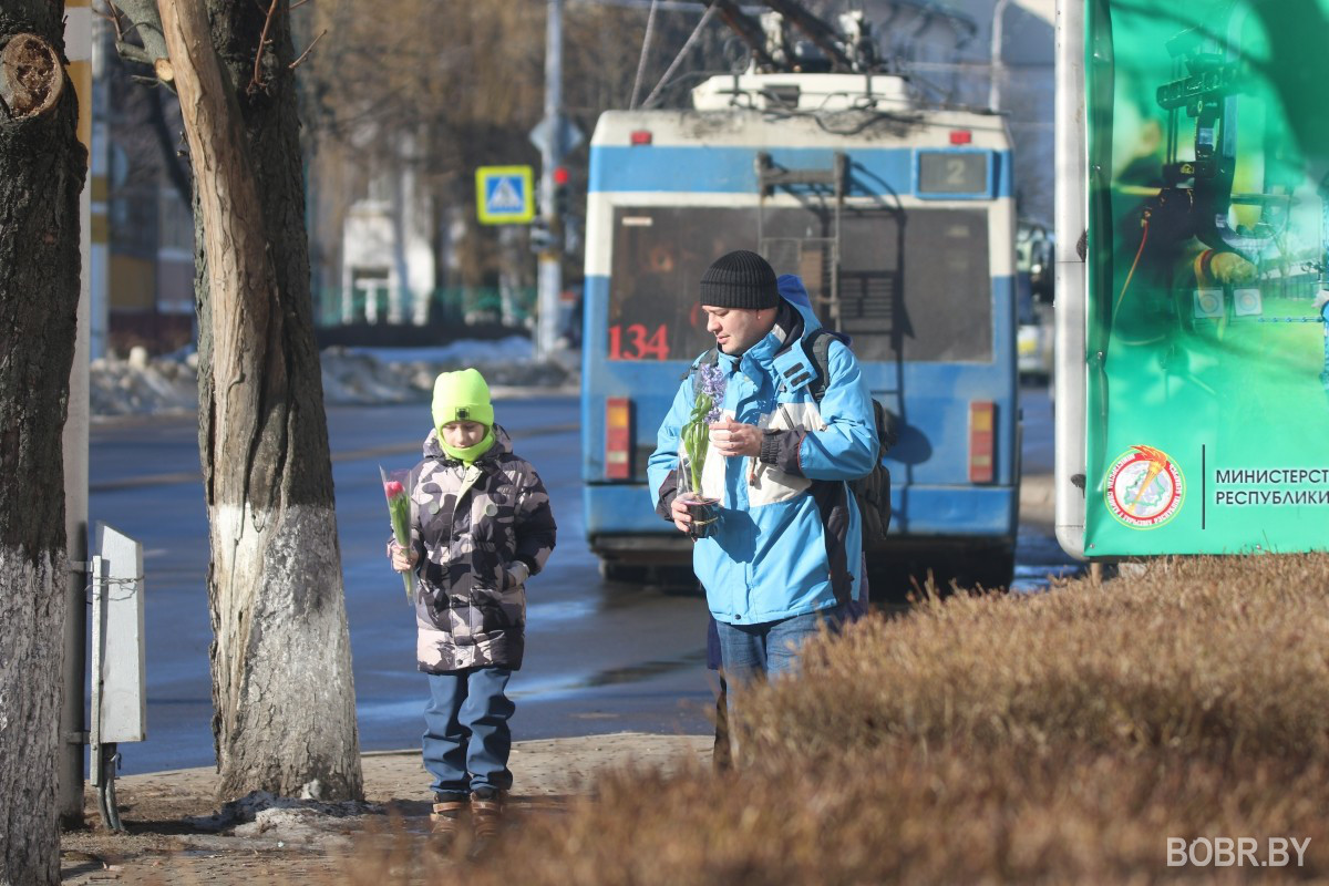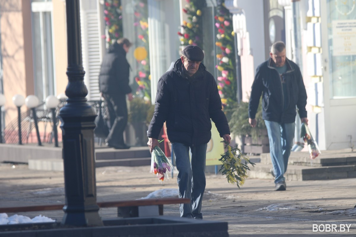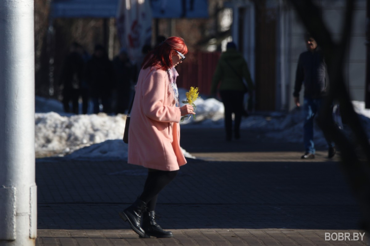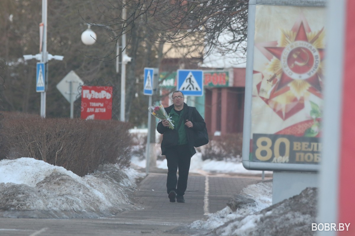 8 марта в Бобруйске очень ждали. Возможно, из-за долгой и холодной зимы. На заводах и в трудовых коллективах праздник начали отмечать с размахом еще за несколько дней. В магазинах, на улицах то и дело можно было услышать: с наступающим! В погожий праздничный день фотокорреспондент BOBR.BY сделал фото с улиц города. В объектив попали тюльпаны, галантный бобер и мартовские котики.