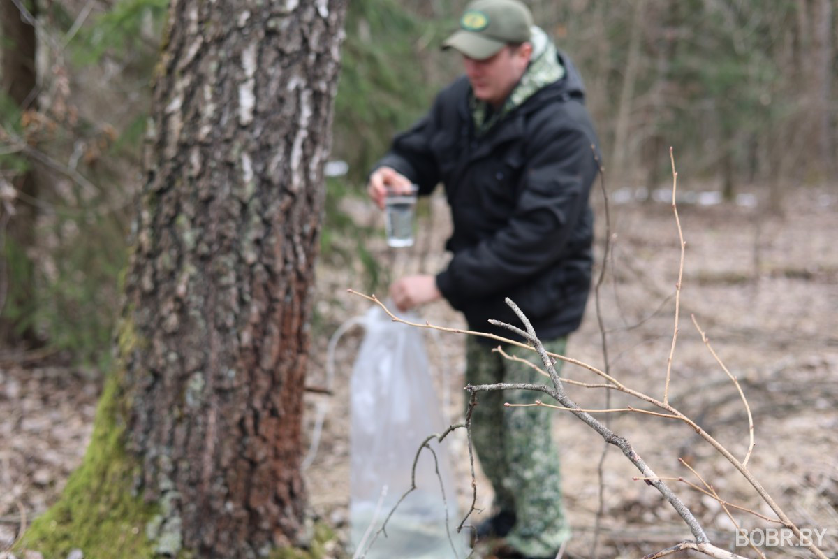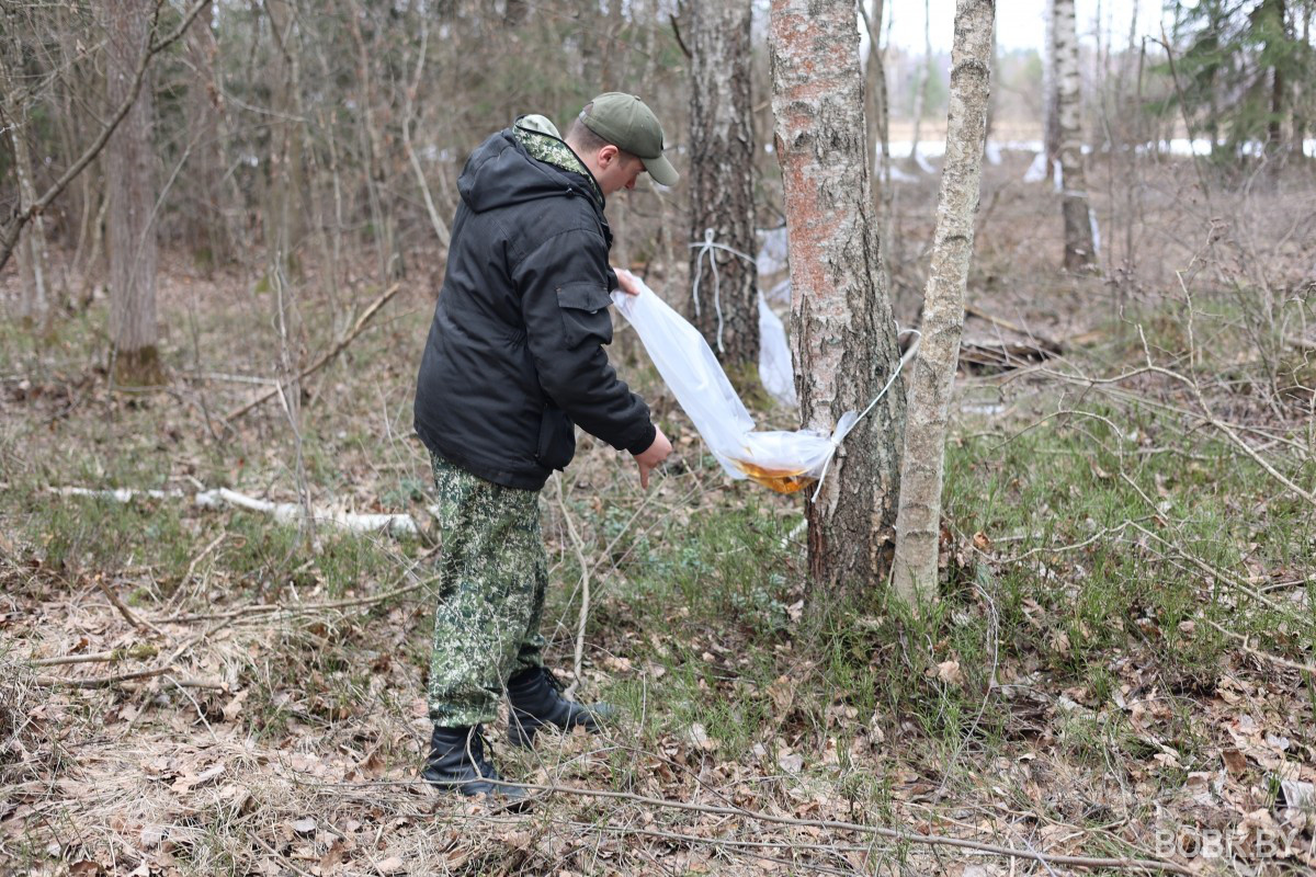 Как рассказал корреспонденту BOBR.BY помощник лесничего Глушанского ОПЛ Эдуард Зайцев, подготовка к сезону начинается с начала года, когда определяются делянки, на которых будут добывать березовый сок. В этом году Бобруйский лесхоз выписал разрешительные документы на территории лесничества на площади 14.8 га для получения сока для населения. Его планируют продать 60 тонн. Кроме того, определены 6,9 га, на которых граждане сами могут добывать сок, самостоятельно и бесплатно. Для этого нужно обратиться в лесничество, узнать определенное место, пройти инструктаж по грамотным действиям на березовой делянке. И, конечно, добывать сок по всем правилам природопользования.