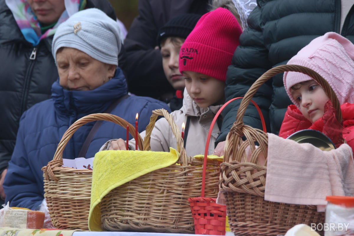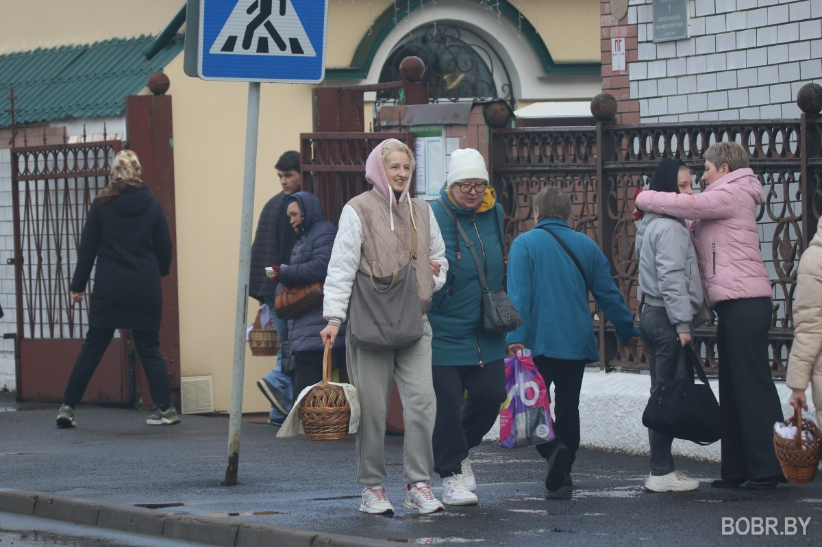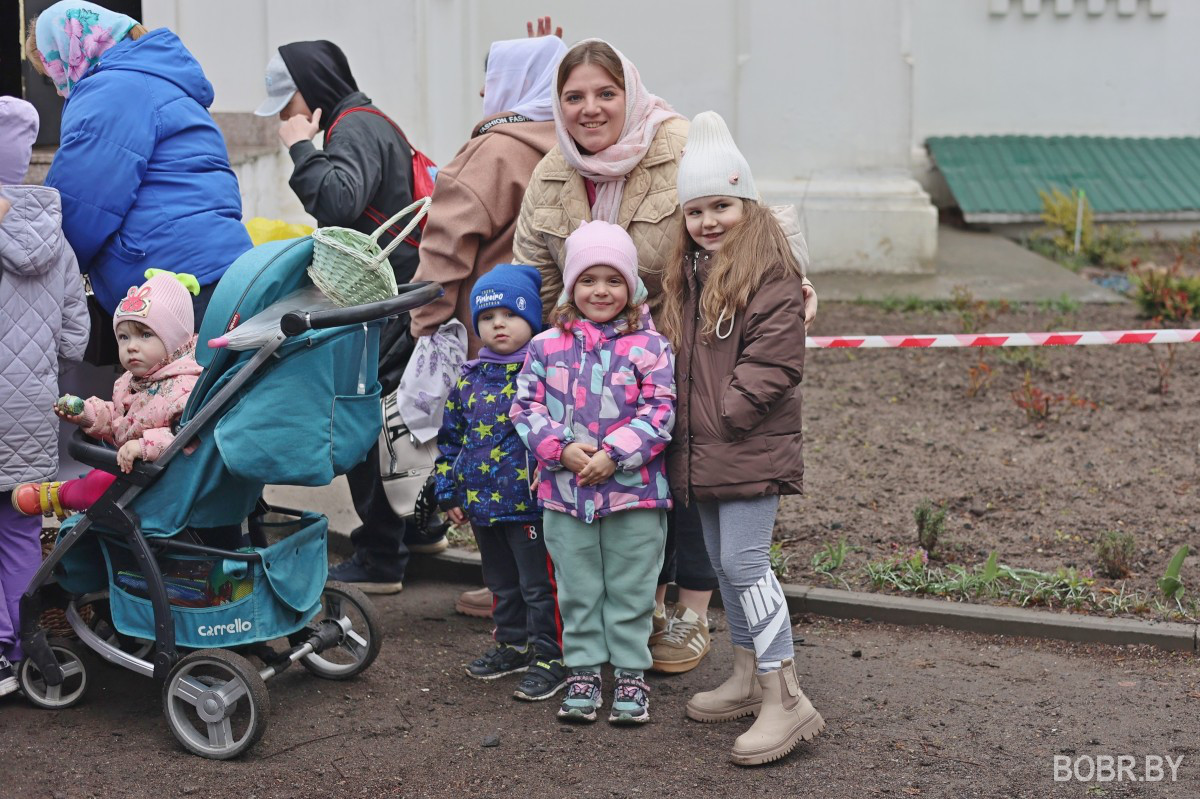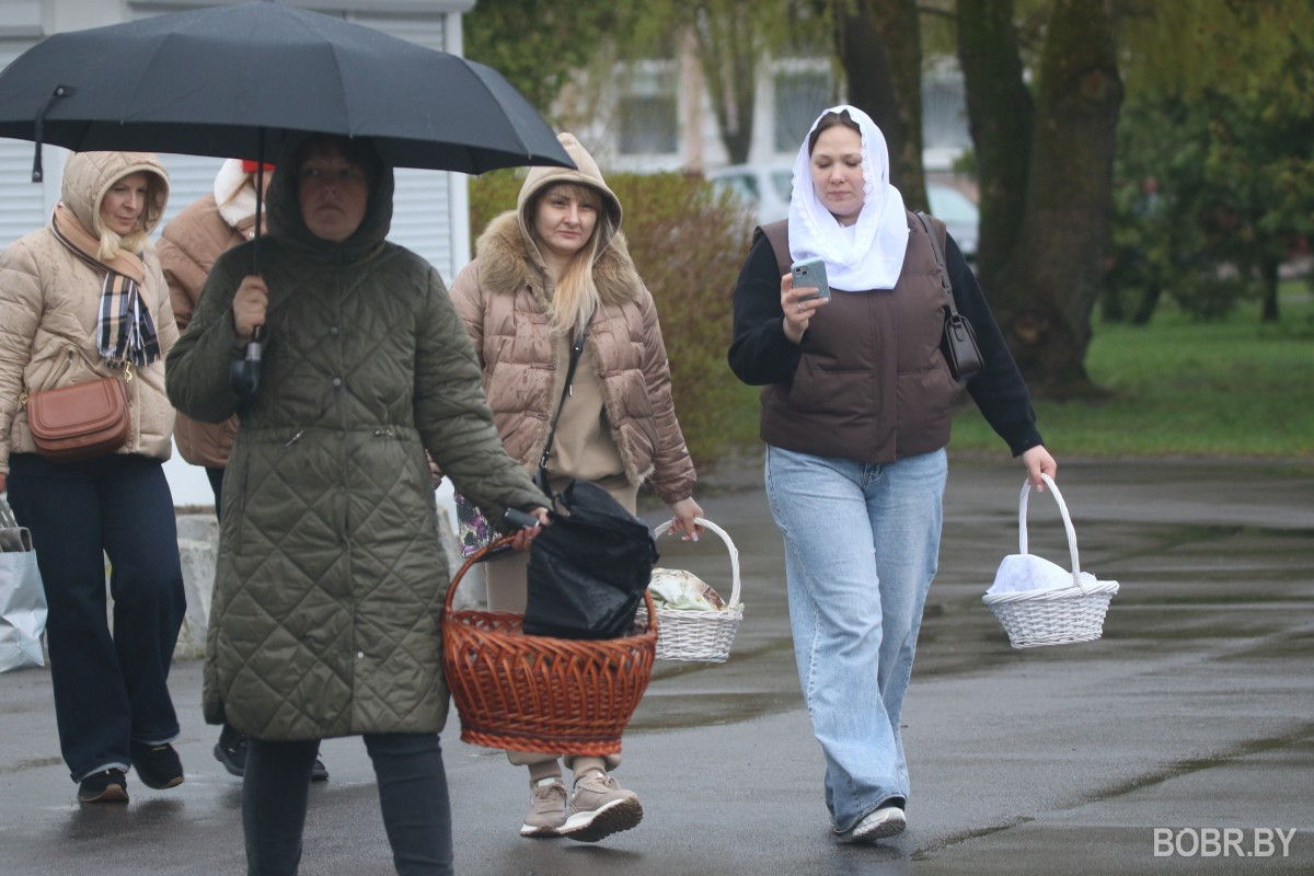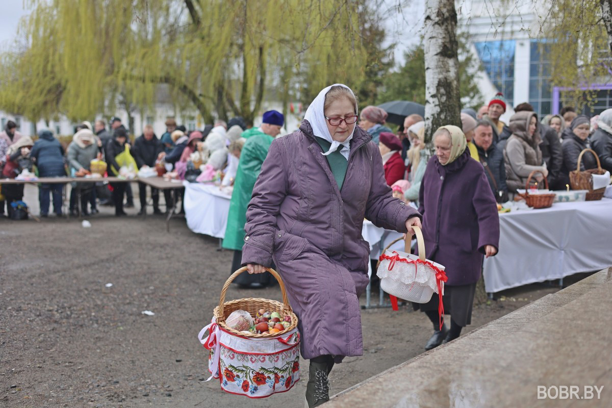 Красивые пасхальные корзинки и один из самых важных православных праздников. В субботу прихожане были окроплены не только священниками, но и мелким весенним дождиком. Бобруйчане приходят на освящение пасхальной трапезы целыми семьями, вместе с детьми.