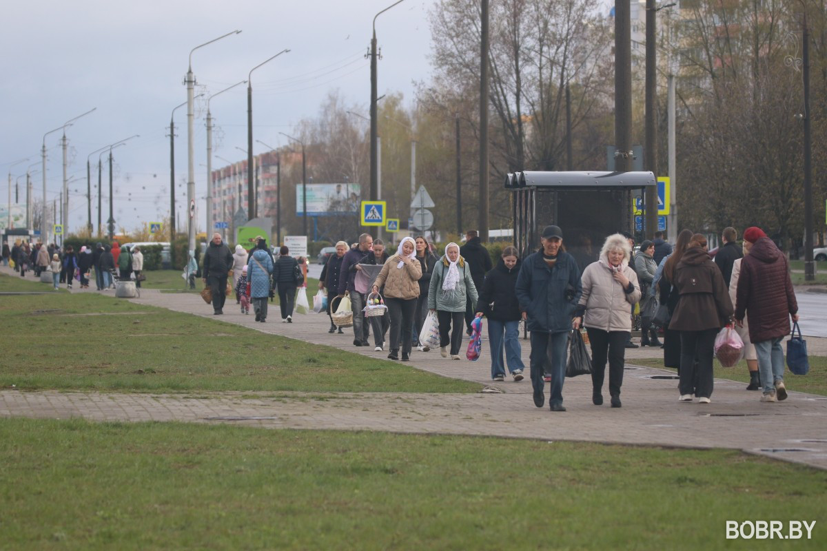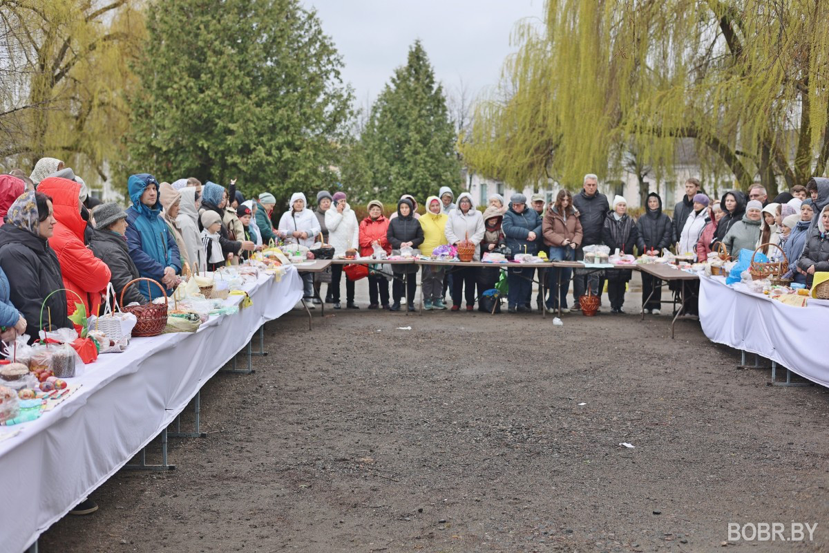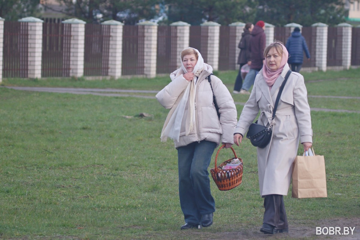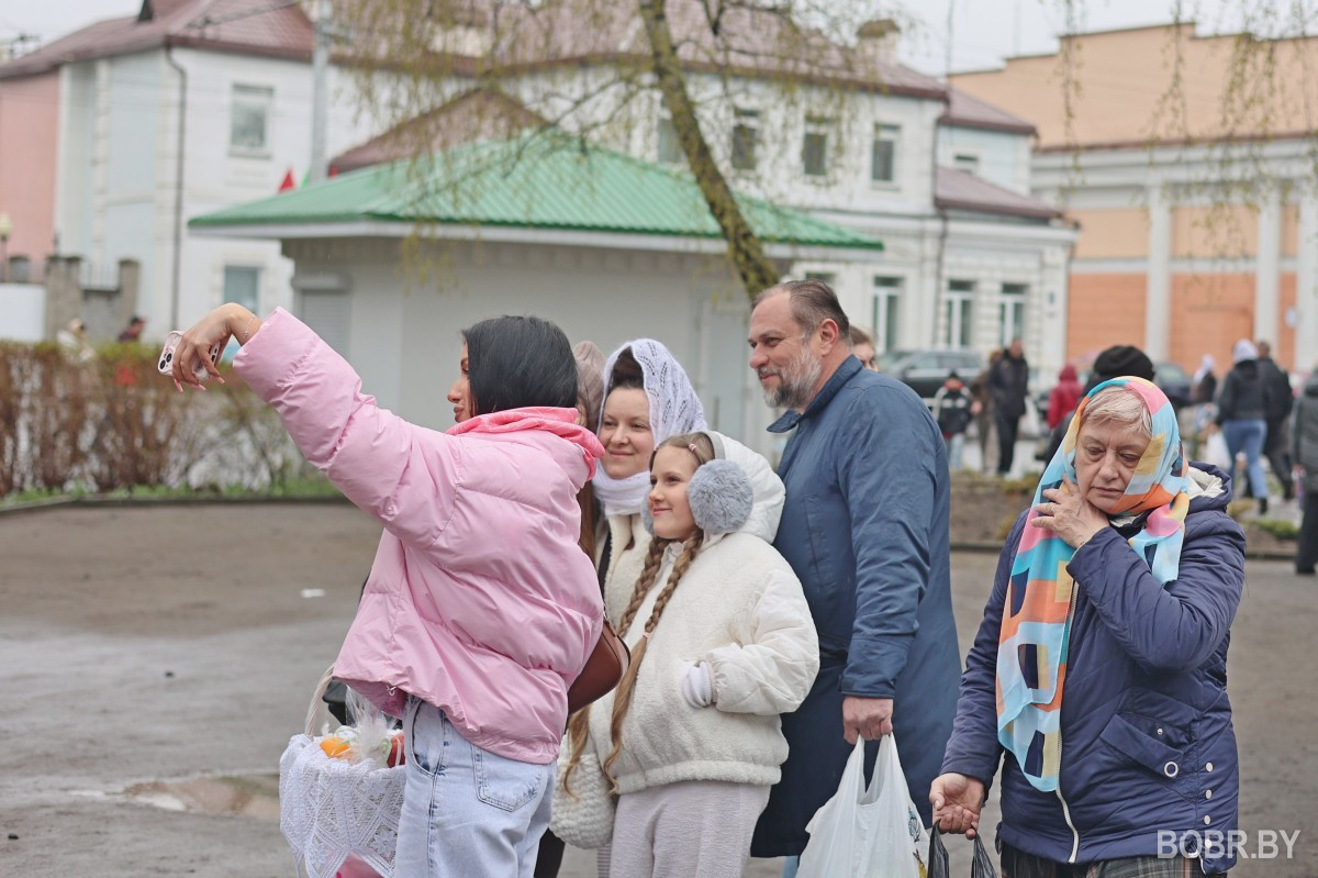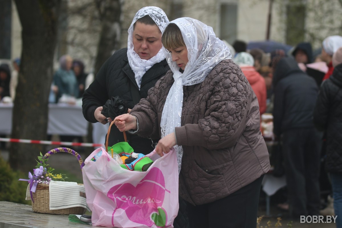 Красивые пасхальные корзинки и один из самых важных православных праздников. В субботу прихожане были окроплены не только священниками, но и мелким весенним дождиком. Бобруйчане приходят на освящение пасхальной трапезы целыми семьями, вместе с детьми.
