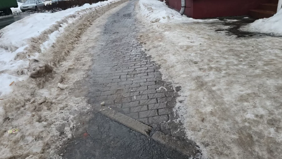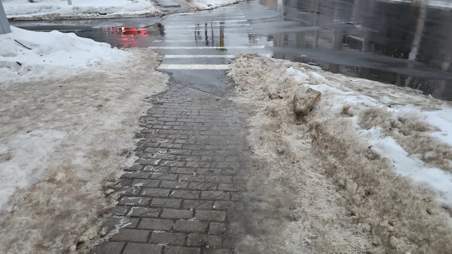 Тротуары, особенно на спусках к переходам, очень скользкие. Нужно быть очень осторожным, чтобы не упасть