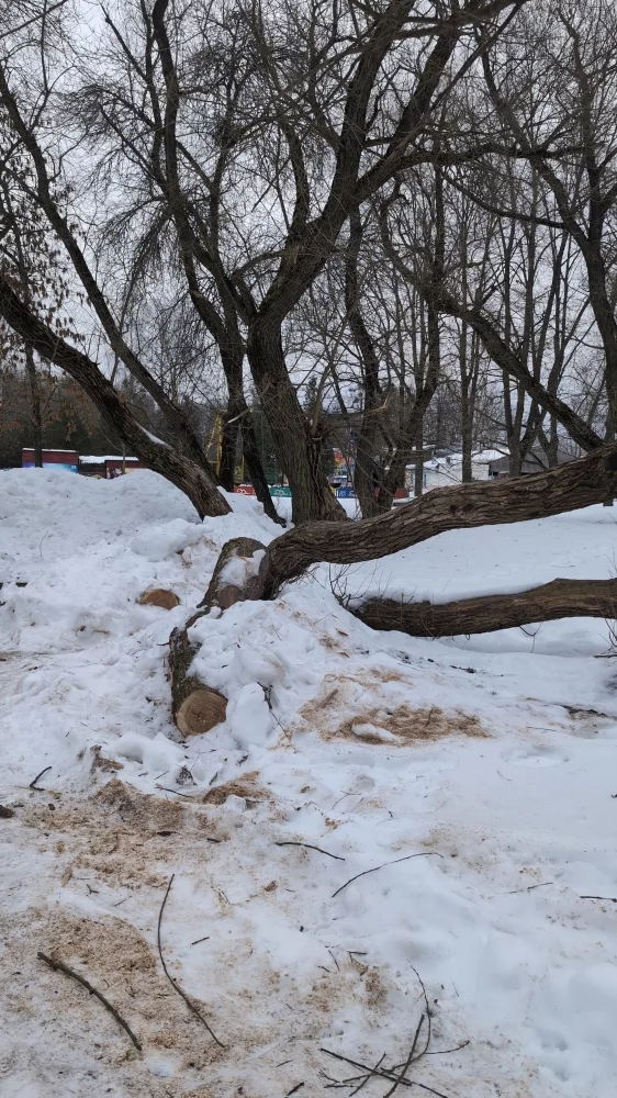 В горпарке спилили стелющиеся ветлы рядом с прудами