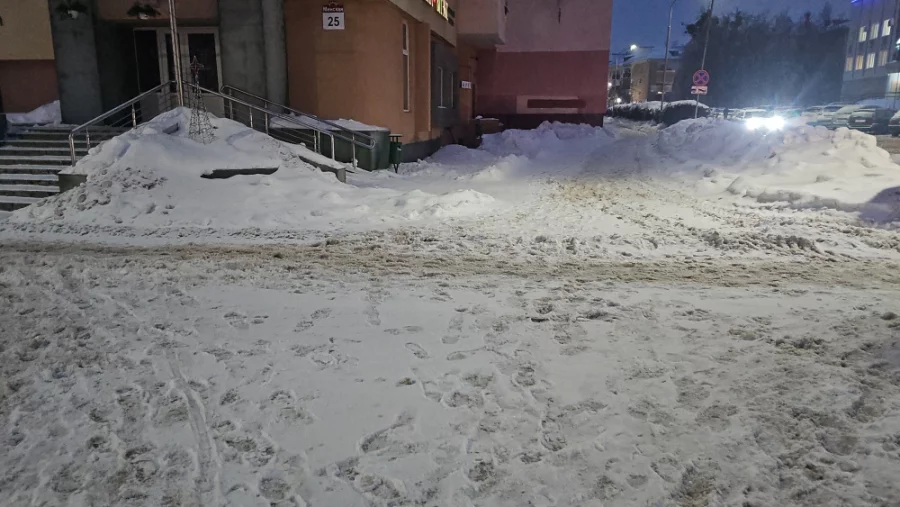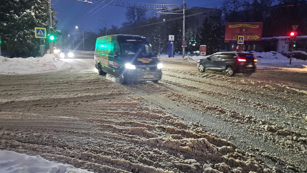 Ночью прошёл небольшой снегопад, дороги и тротуары превратились в кашу. Авто буксуют на старте, пешеходам тяжело передвигаться