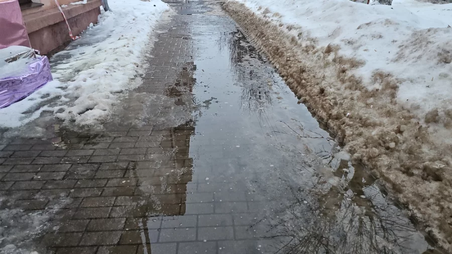 Некоторые тротуары превратились в море. Страшно подумать, что будет когда вернутся морозы