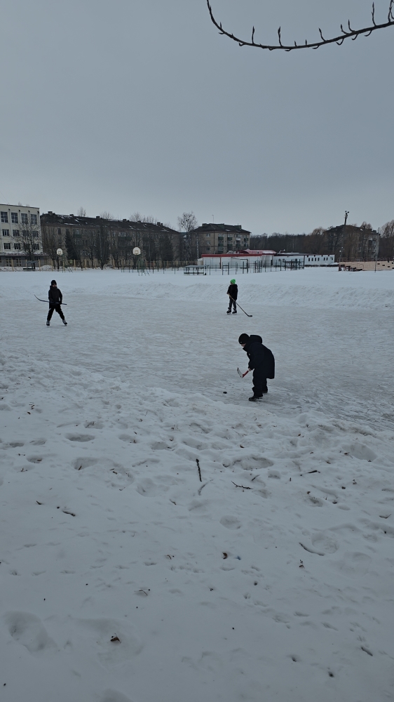 А на стадионе Спартак детишки тренируются играть в хоккей