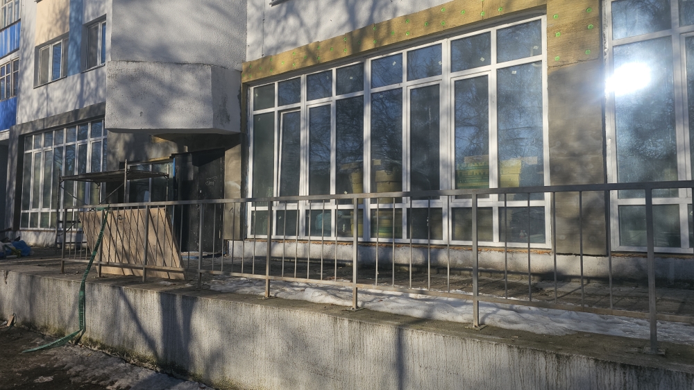 Уже штукатурят фасад бывших Хозтоваров