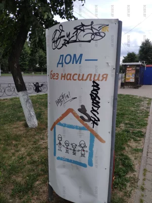 Дом без насилия. С этим утверждением походу кто-то не согласен. Почему бы не смыть вандальные надписи? Неужели ЖЭУ их не замечает? Как