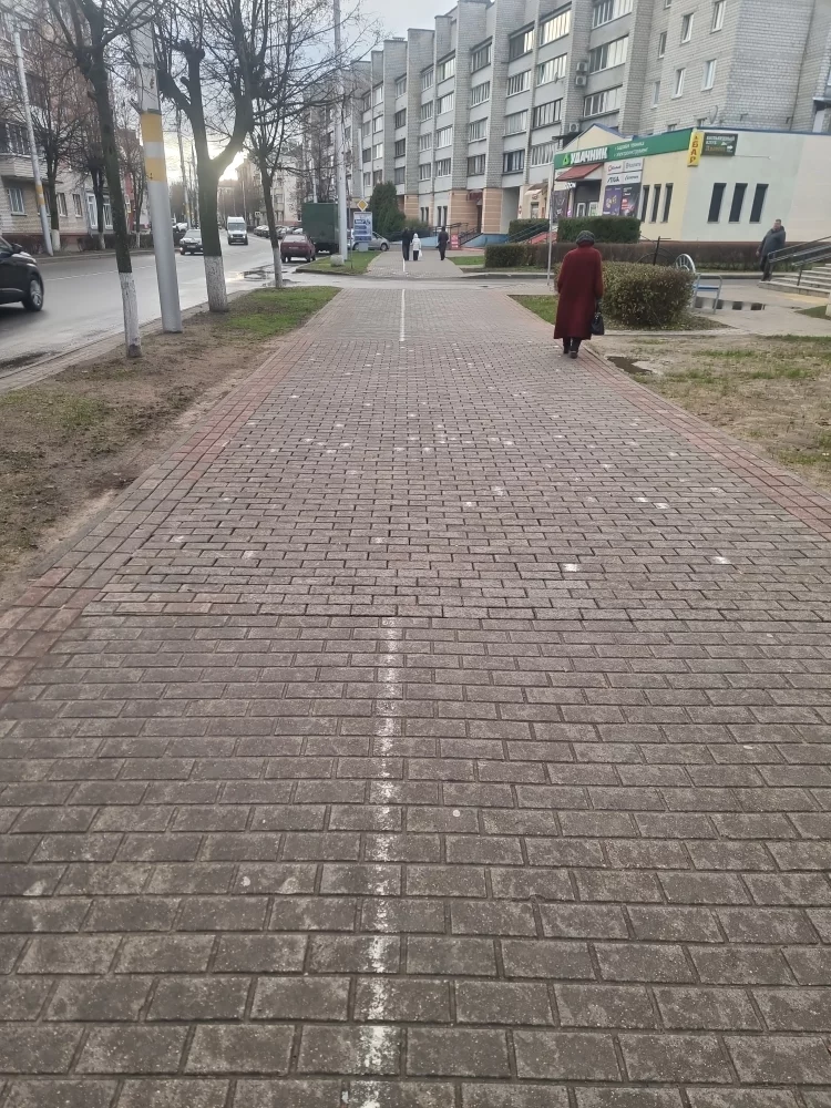 Проводили ремонт коммуникаций, но линию разметки нанести на плитку не смогли и плитку сложили в разнобой.