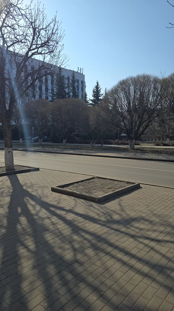 На площади Ленина возле горисполкома установили зелёные насаждения в клумбах