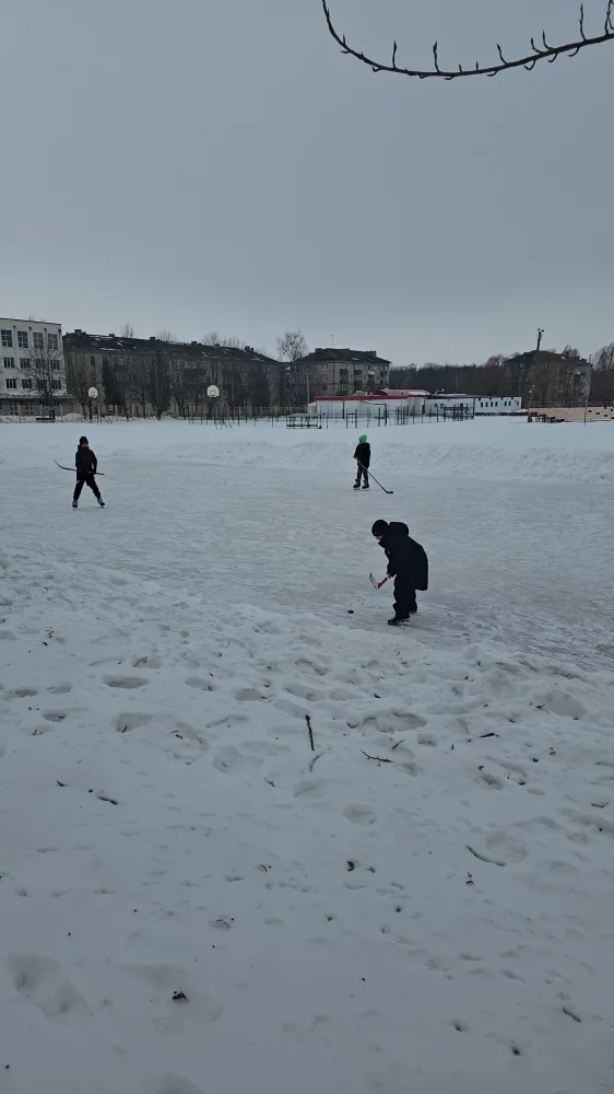 А на стадионе Спартак детишки тренируются играть в хоккей