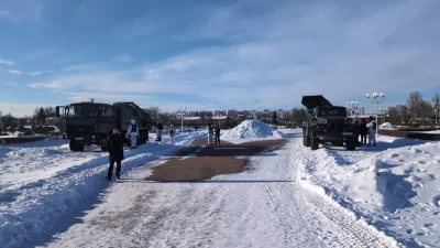 Возле Арены подогнали технику. Военные говорят, на 23 февраля будет выставка вообружений и каша