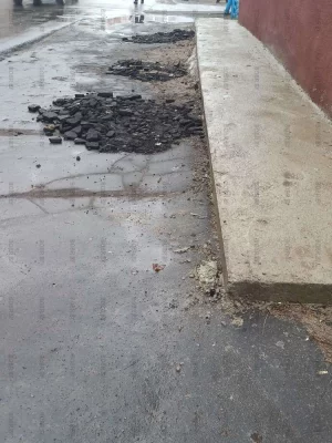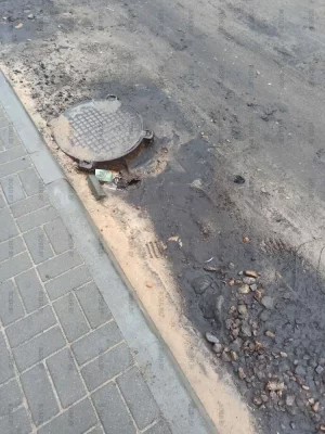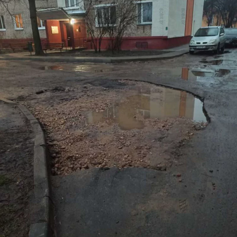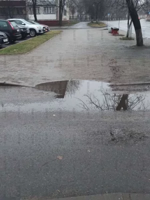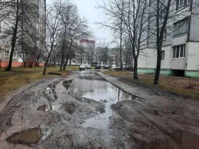 Въезд во двор по улице Рокоссовского 48. Кроме как по газону на легковой машине не заедешь