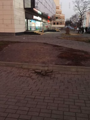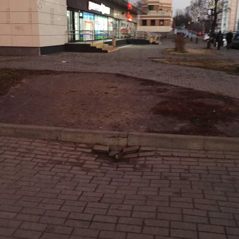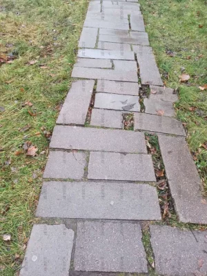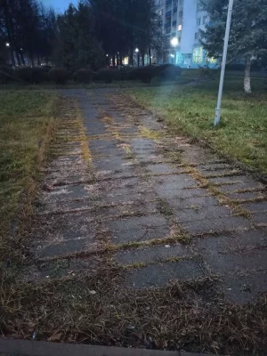 Такая удобный по высоте подъем на дорожку во дворы, что все ходят по траве